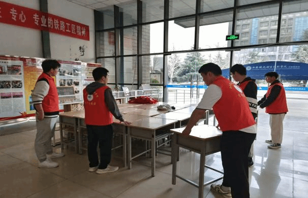 活动中,志愿者们按照分组,有序开展志愿服务活动,志愿者们个个干劲十足,不怕脏、不怕累,分工合作,进行了考前卫生清扫、摆放桌椅、准备考场用品等考场布置工作,为学院单招考试的有序进行贡献出自己的一份力量,同时为第二天的单招考试做好了十足的准备。